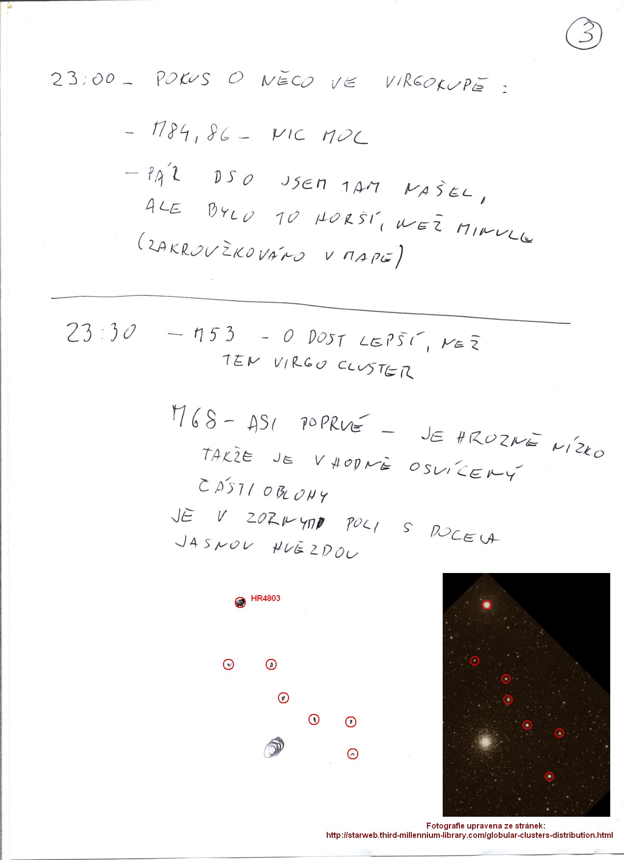 NGC4293, M85 + NGC4394 (vypadala jen jako hvězda), M53, M68 |