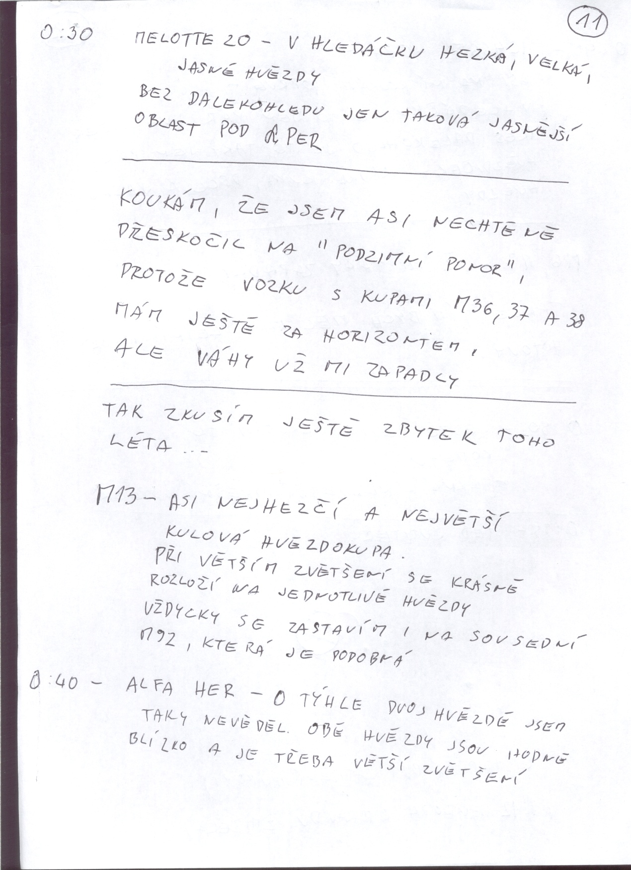Tohle pozorování bylo zaměřené hlavně na plnění úkolů z astronomického