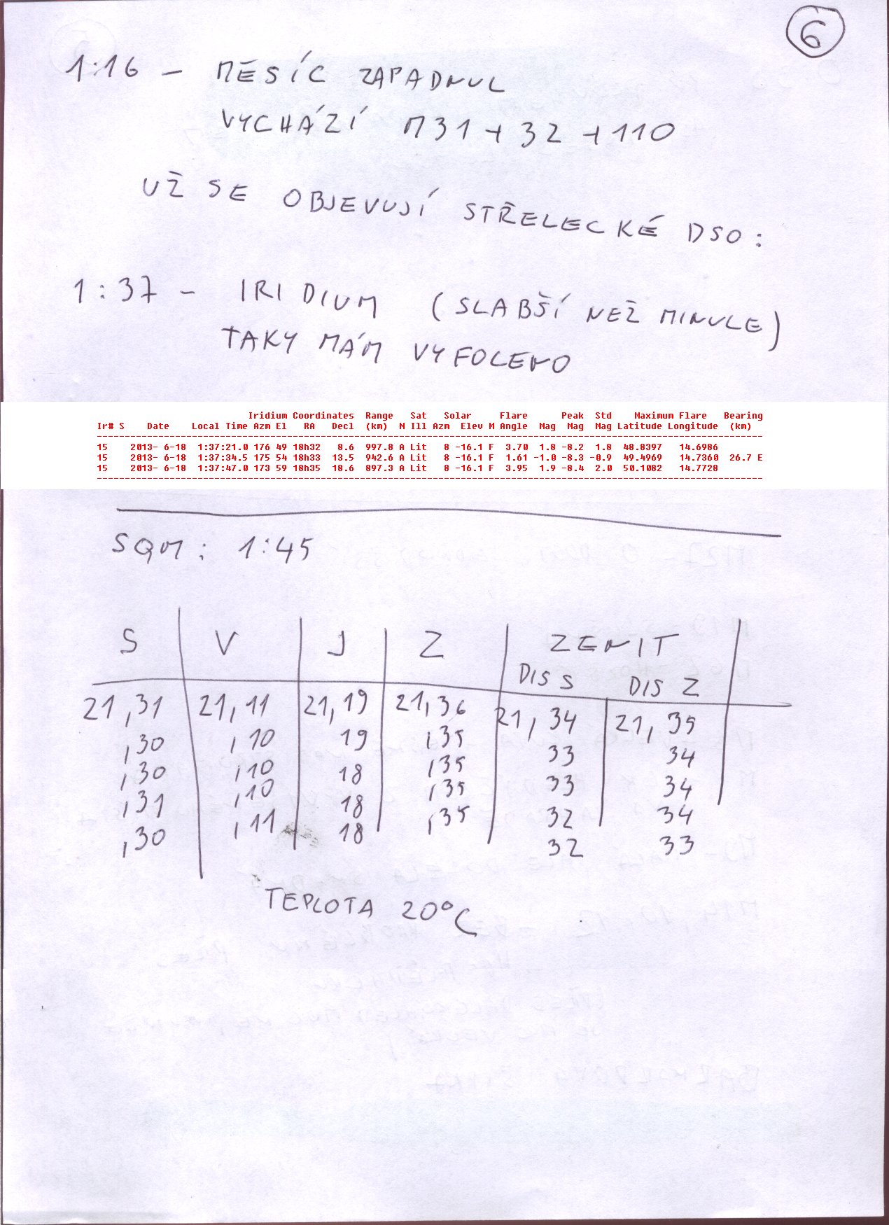 Během noci jsem viděl 3 záblesky družic Iridium - z toho se mi dva