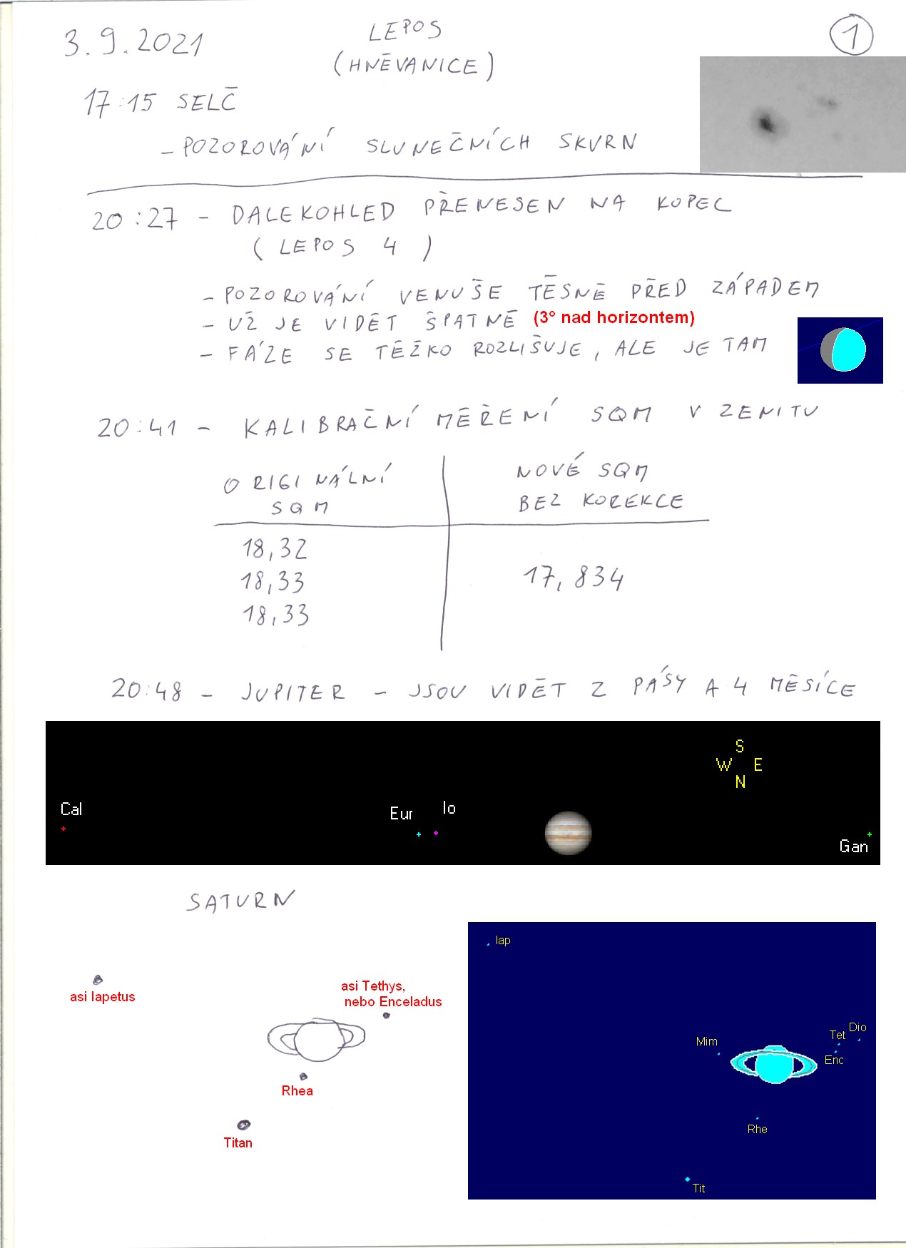 Slunce, Venuše, Jupiter, Saturn |