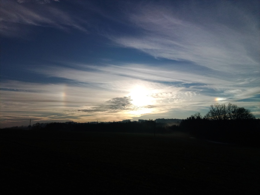 Nevýrazný HDO (uprostřed fotky) při výšce Slunce asi12° nad horizontem