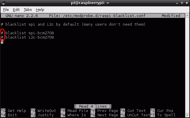 V editoru, který se tímto příkazem otevře, se musí zakomentovat dvě řádky (připsat před ně "dvojkřížek" # ), jak je vidět na následujícím obrázku: