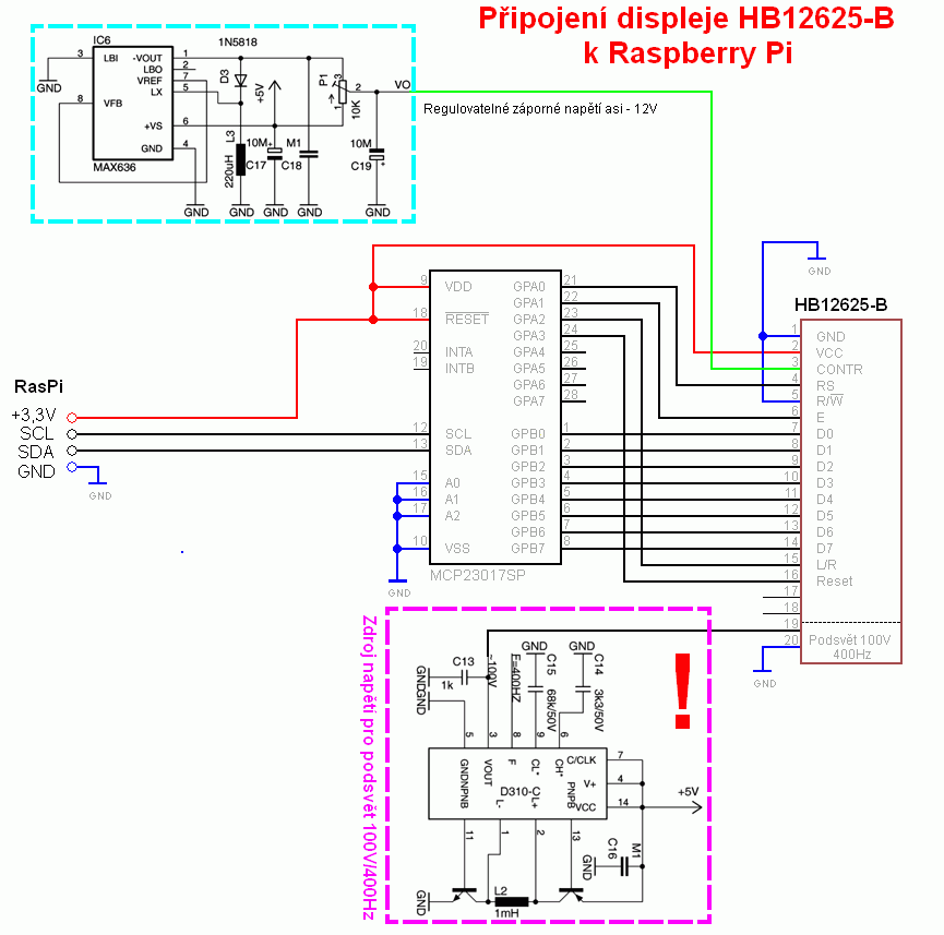 Displej včetně expanderu si z RasPi (z 3,3V napájení) bere proud necelý