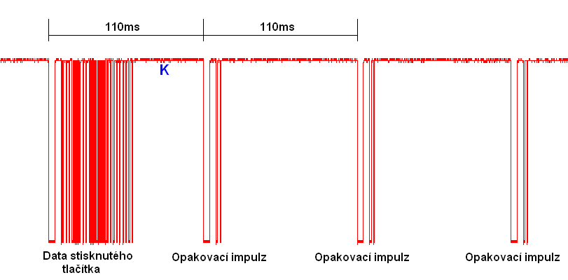 ovladači drženo trvale, odešle se po 110ms další krátký kód, který