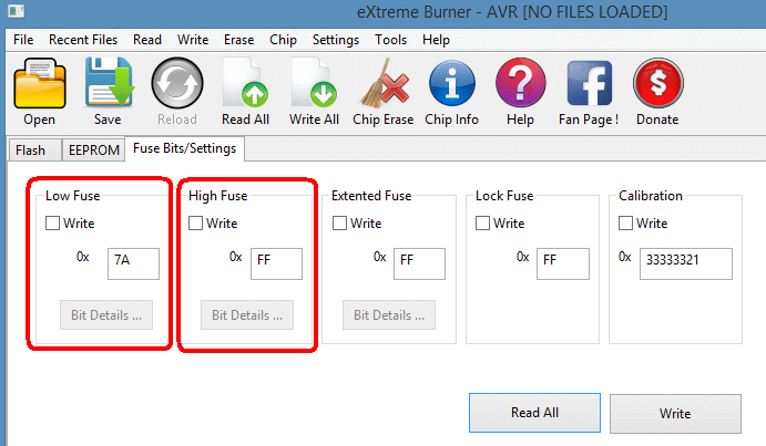 Fuse") a "Lock" bajty. Běžným způsobem (přes vývojové prostředí "Arduino") se tato paměťová místa nedají upravovat, ale existují programy které tyto FUSE dokáží měnit - například eXtreme Burner, nebo program AVRDUDESS