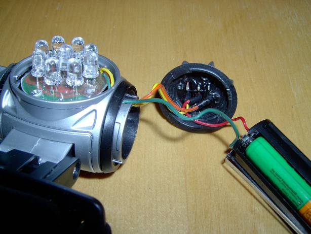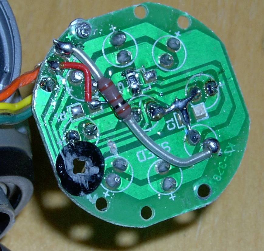 Čip byl "deaktivován" provrtáním. Všechny další původní součástky mimo LEDek byly odstraněny. Prostřední řada LEDek byla nahrazena červenými LED diodami.